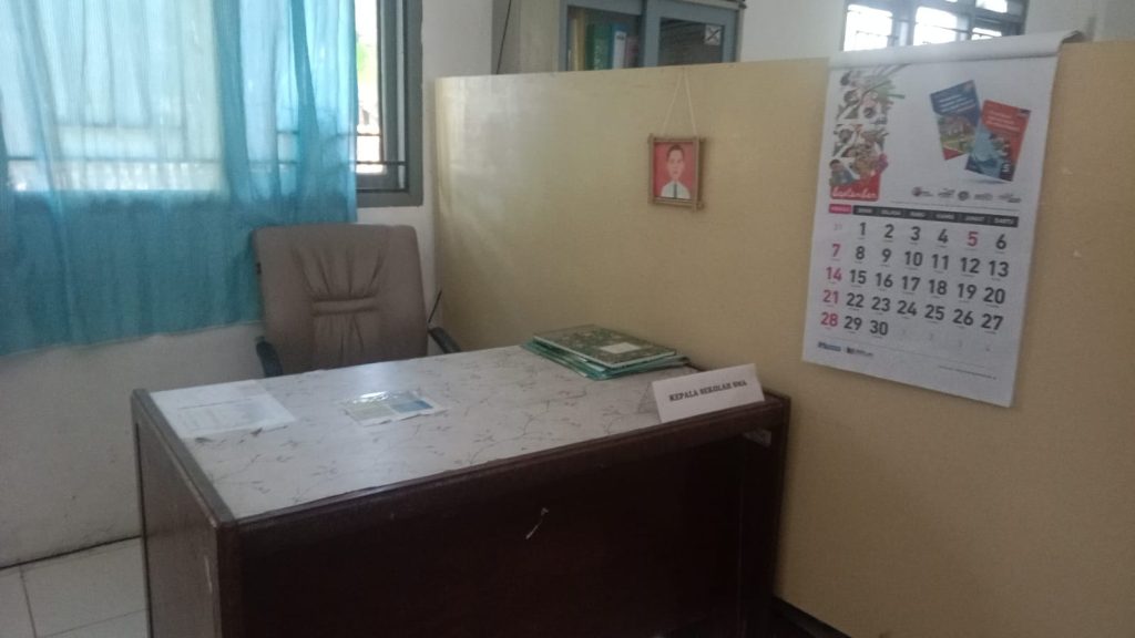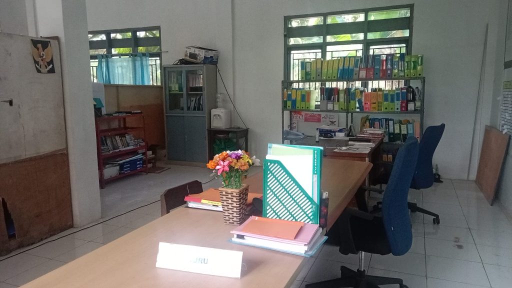 Ruang Guru dan Kepala Sekolah Guru dan kepala sekolah berada pada 1 ruangan yang sama. Luas ruangan cukup luas, karena di situ juga terdapat ruang tamu.